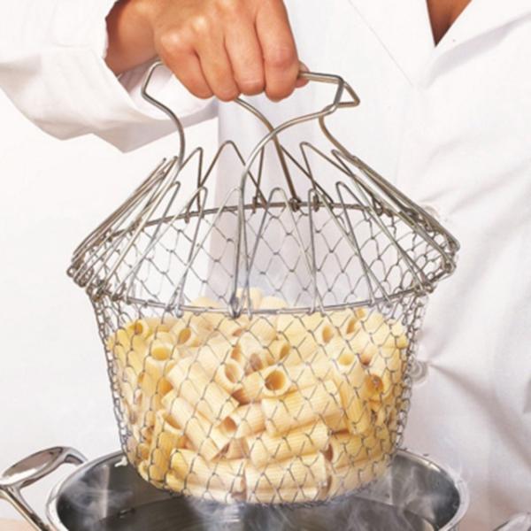 Foldable Deep Fryer Fry Filter Basket Colander Stainless Steel Fry Chef Basket Mesh Strainer